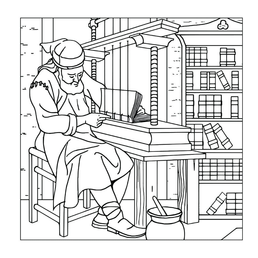 42 métiers du Moyen Âge à colorier